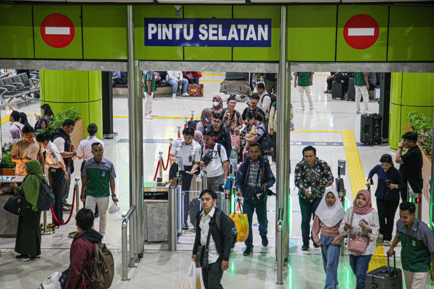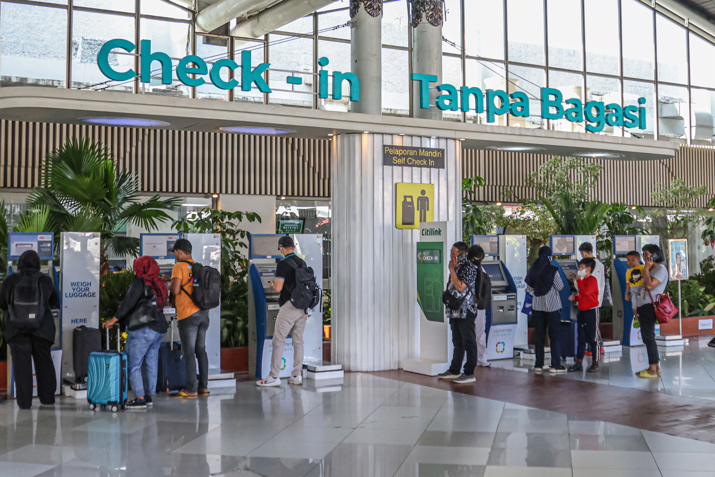Sejumlah penumpang pesawat melakukan check-in untuk mudik lebih awal di Terminal 1B, Bandara Soekarno-Hatta, Tangerang, Jumat (20/3/2025). (Hanung Hambara/Jawa Pos)