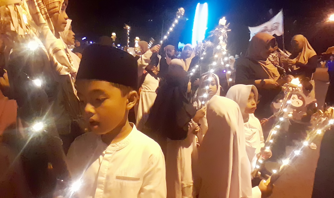 Sejumlah Warga Desa Jongrangan Kulonprogo merayakan malam takbir. (Nur Chamin/Jawa Pos Radar Semarang)