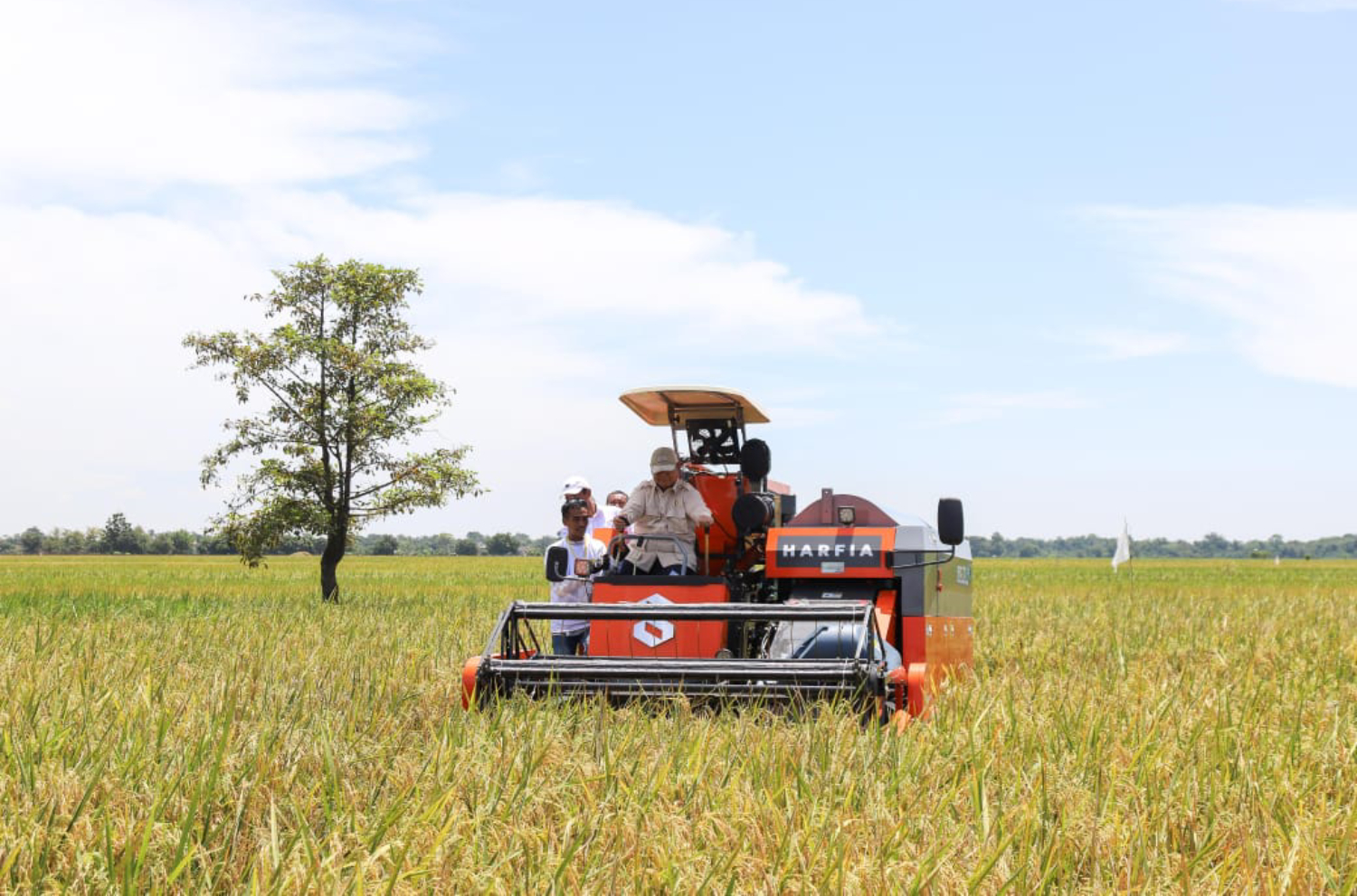 Presiden Prabowo Subianto mencoba mengendarai alat pertanian. Cadangan beras pemerintah kini mencapai 4 juta ton. (Humas Kementan)