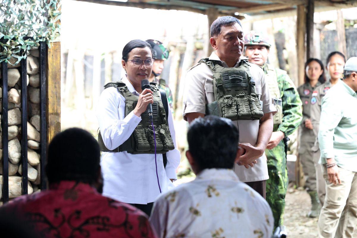Menhan Sjafrie Sjamsoeddin dan Menkeu Sri Mulyani kunjungan ke daerah rawan konflik di Papua pada Sabtu (7/6). (Tim Media Menhan Sjafrie Sjamsoeddin)