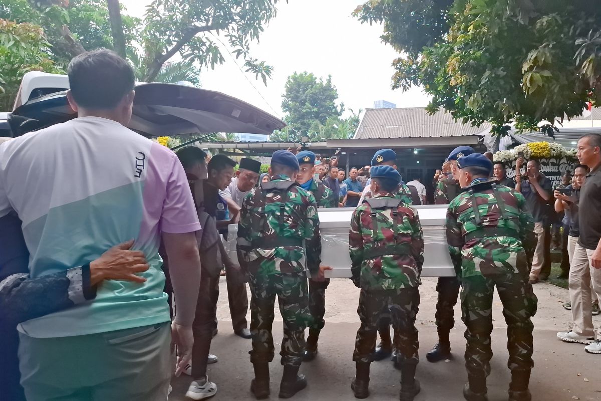 Jenazah Marsma TNI Fajar Adrianto akhirnya tiba di rumah duka di Jl. Triloka XI No. K14, Kompleks TNI AU, Pancoran, Jakarta Selatan, Minggu (3/8). (Ryandi Zahdomo/JawaPos.com)