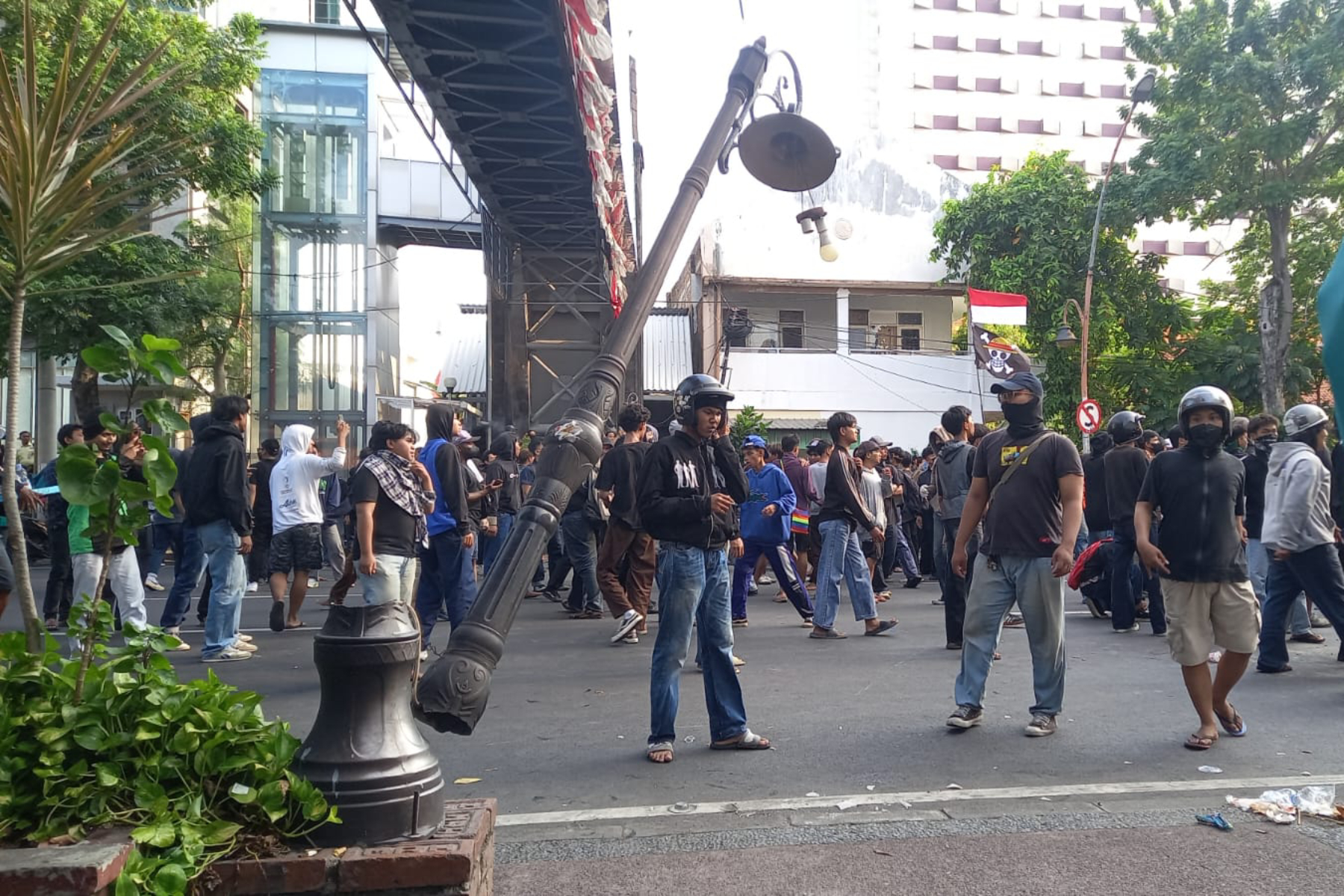 Kerusakan fasilitas umum imbas kerusuhan usai demonstrasi di depan Gedung Negara Grahadi Surabaya, Jumat (29/8) lalu. (Novia Herawati/JawaPos.com)