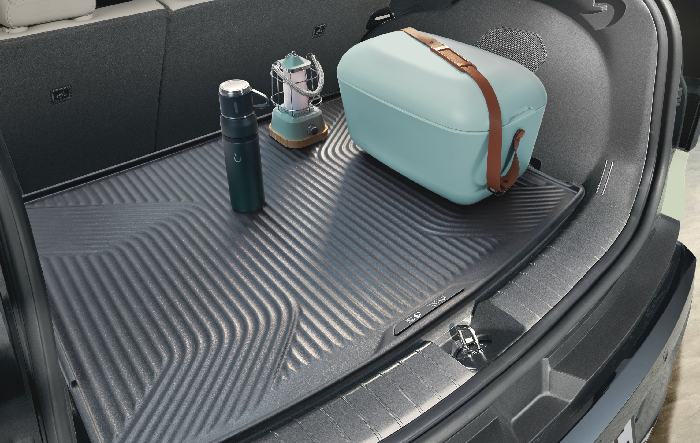 Kia memperkenalkan trunk liner/cover bagasi edisi terbatas yang dibuat menggunakan plastik laut dari The Ocean Cleanup khusus untuk Kia EV3.