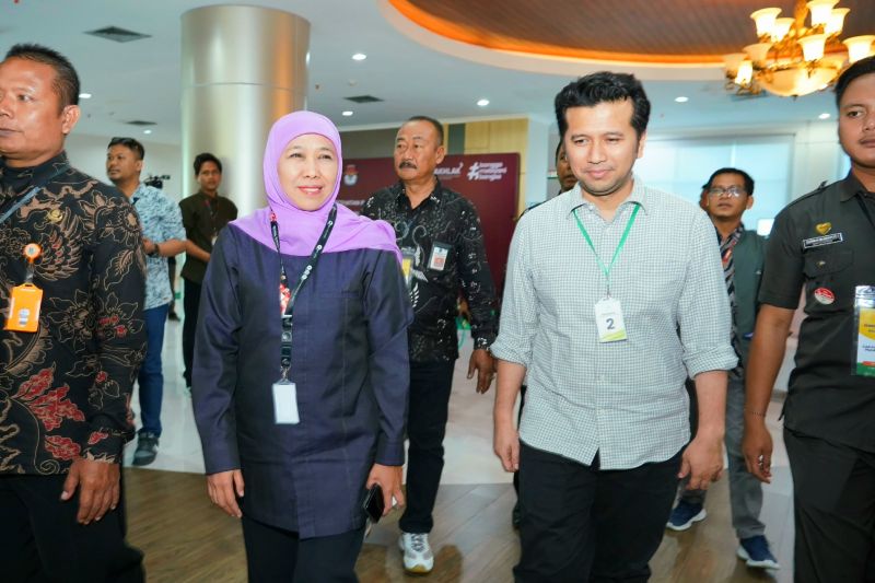 Pasangan Khofifah Indar Parawansa dan Emil Elestianto Dardak usai menjalani serangkaian tes kesehatan di RSUD dr Soetomo Surabaya, Jumat (30/8/2024). (ANTARA/HO-Tim KIP)