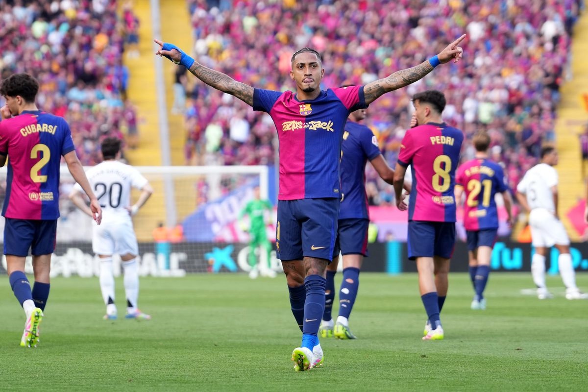 Raphinha sukses membawa Barcelona mengalahkan Real Madrid di Liga Spanyol. (X/@FCBarcelona)