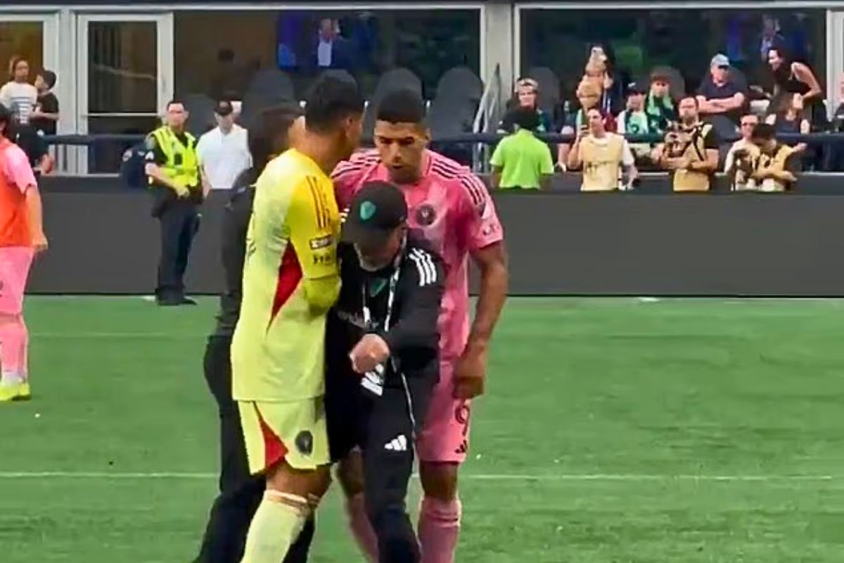 Luis Suarez terekam tampak meludahi Pelatih Seattle Sounders. (X @SInow)