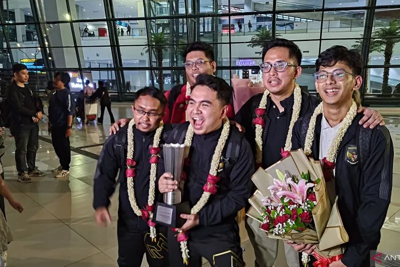 Timnas eFootball Indonesia yang telah kembali ke Indoneisa dan disambut dengan hambat (Sumber Foto : Antara News)
