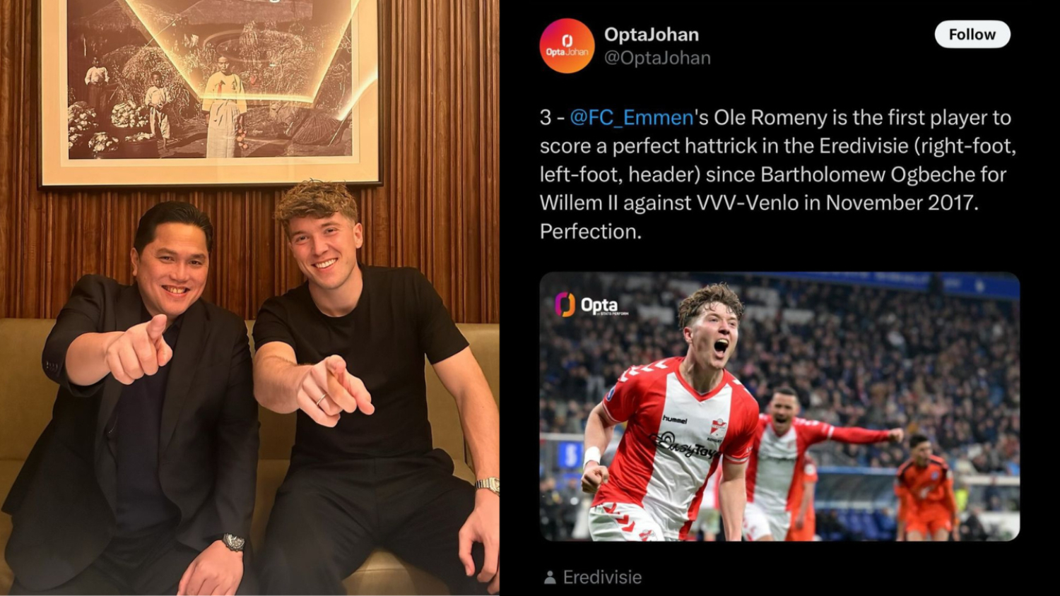 Calon Striker naturalisasi Timnas Indonesia, Ole Romeny, bersama ketua umum PSSI, Erick Thohir. (Instagram @erickthohir)