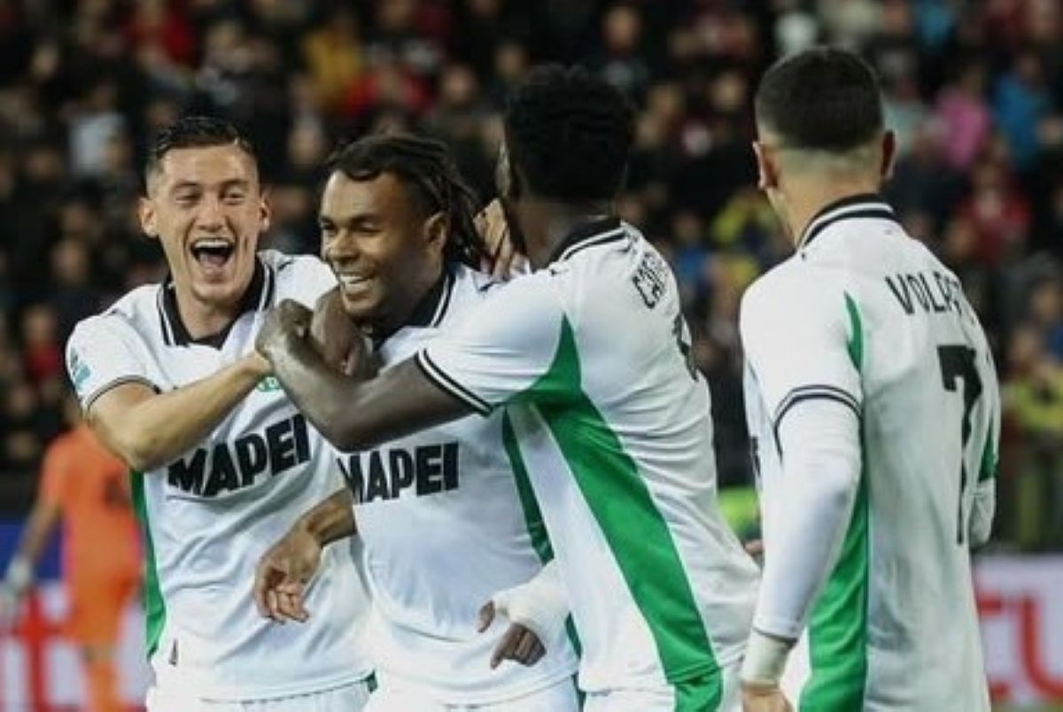 Jay Idzes (ujung) merayakan gol Sassuolo saat mengalahkan Cagliari. (Dok. Jay Idzes)