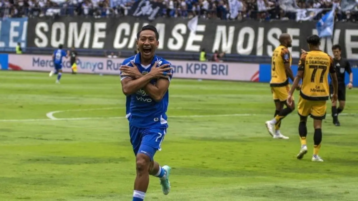 Selebrasi Kiko (depan) saat mencetak gol di laga kekalahan Persik Kediri lawan Bhayangkara FC (Dok. Persik Kediri)