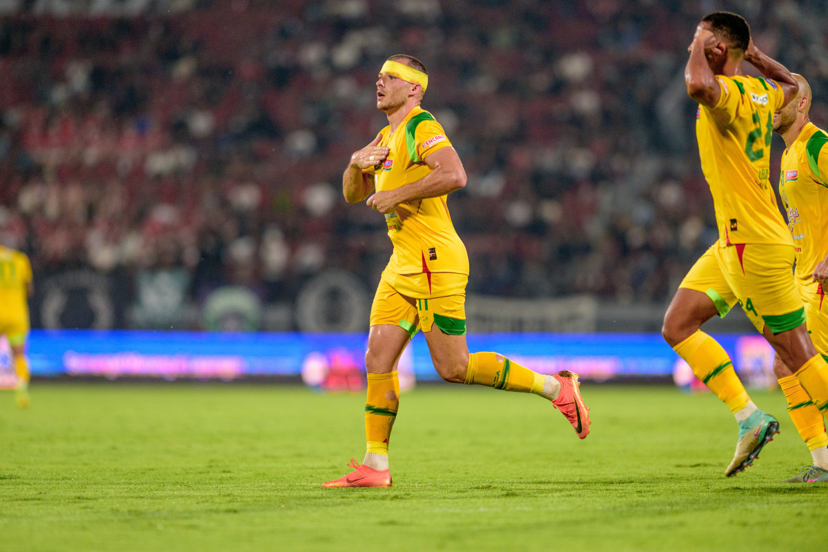 Penyerang Persebaya Mihailo Perovic merayakan gol ke gawang Bali United. (Persebaya)