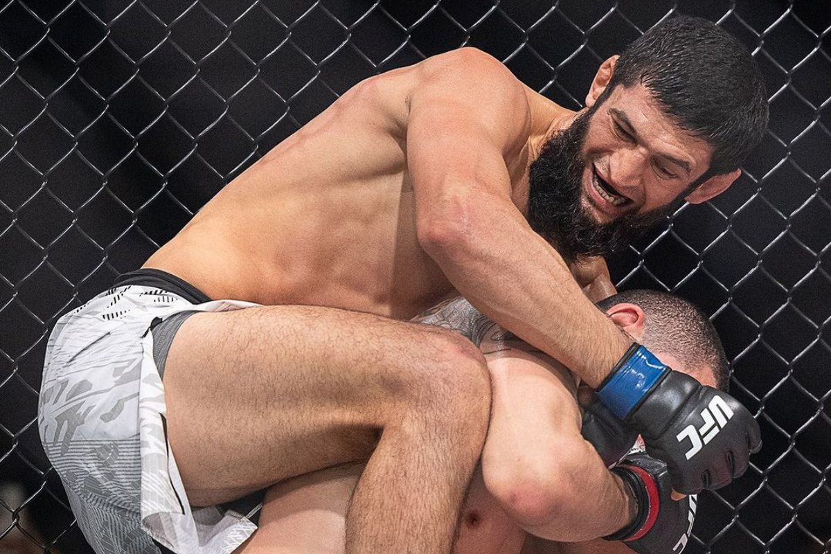 Khamzat Chimaev tampil brutal saat hancurkan rahang Robert Whittaker. (Media UFC)