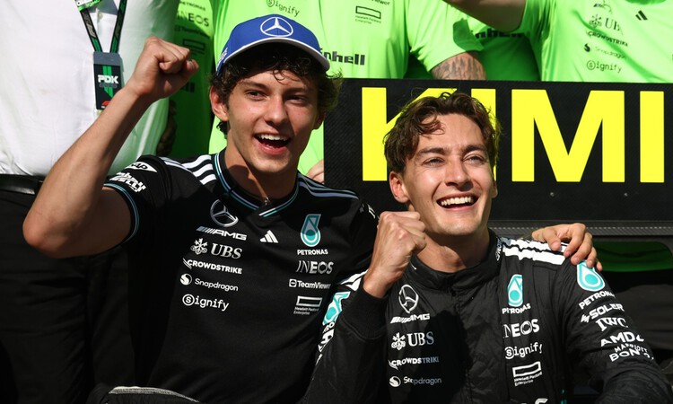 Kimi Antonelli dan George Russell. (Bein Sports)