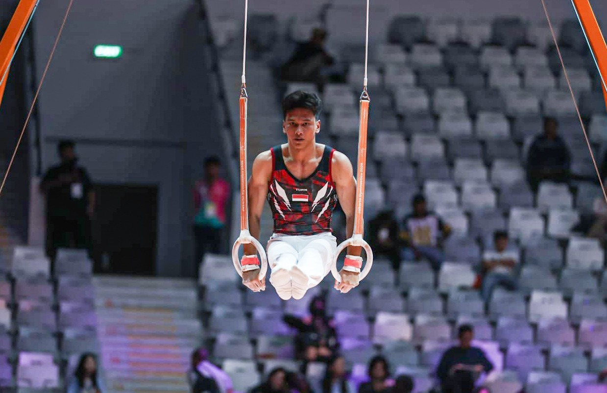 Abiyurafi diproyeksi menjadi andalan Indonesia di SEA Games 2025 dan diyakini berpotensi dapat medali. (Dok. Jakarta Gymnastic OC)