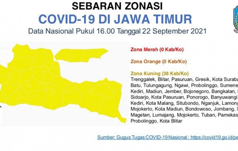 Tangkapan layar peta zonasi di Jawa Timur berdasarkan data Satgas Pengendalian COVID-19 per 22 September 2021. (ANTARA/HO-Biro Adpim Jatim)