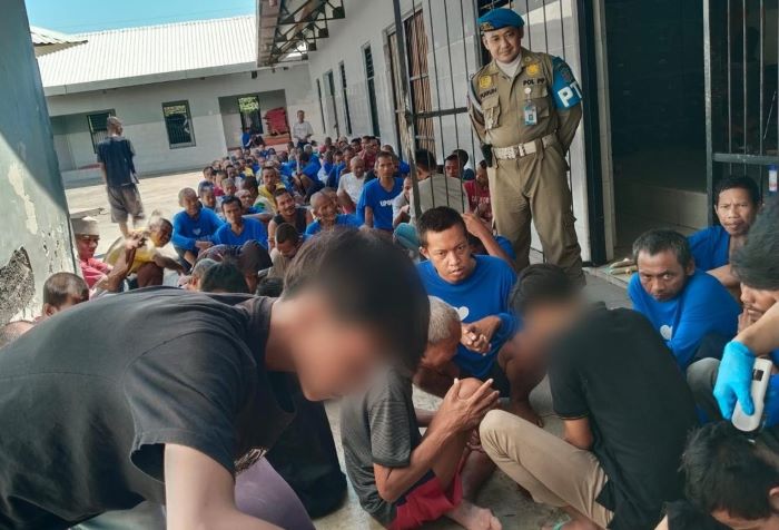 Belasan remaja asal Surabaya yang tertangkap saat asyik pesta miras menjalani sanksi sosial di Liponsos. (Pemkot Surabaya)