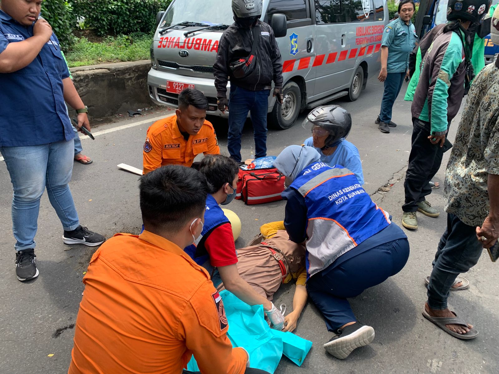 Kecelakaan lalu lintas melibatkan sepeda motor dan truk trailer terjadi di Jalan Simo Jawar No.6, Surabaya, Jumat (13/12). (Dok BPBD Surabaya)