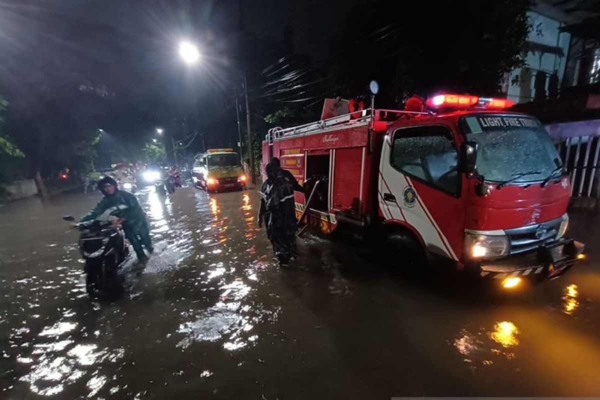Mobil damkar dikerahkan membantu mengatasi banjir di Kota Surabaya. (Pemkot Surabaya/Antara)