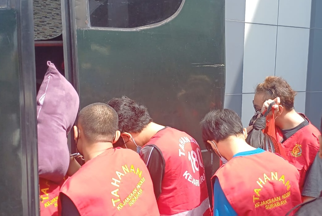 Tersangka kasus pesta sesama jenis di salah satu hotel kawasan Ngagel, Surabaya, saat digiring ke Rutan Kelas I Surabaya. (Humas Kejari Surabaya)