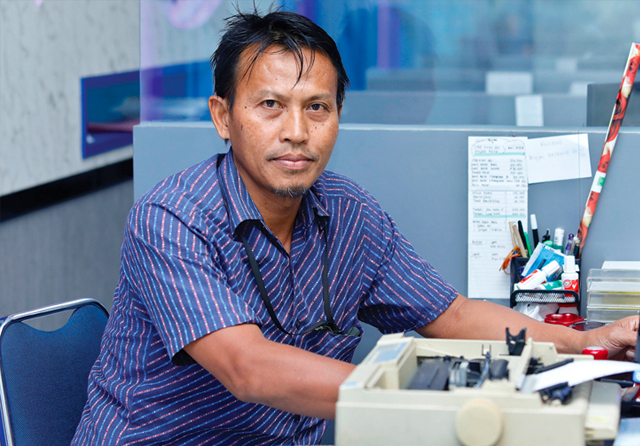 PROFESI BARU: Agung Setyabudi, mantan kaopten timnas sepak bola Indonesia, saat ditemui di kantornya, PDAM Kota Surakarta, Kamis (16/6). (Angger Bondan/Jawa Pos)