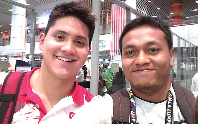 HEBAT: Perenang andalan Singapura Joseph Schooling bersama wartawan Jawa Pos.