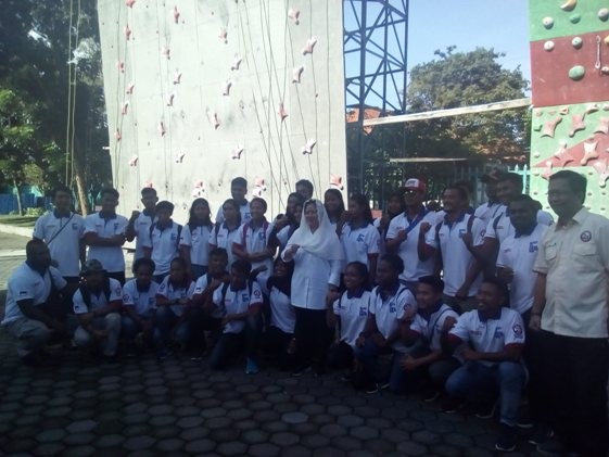 Cabor rugby dari Indonesia yang akan maju ke Asian Games 2018 mendatang bersama Menteri Kordinator Pembangunan Manusia dan Kebudayaan (PMK) Puan Maharani di kompleks Stadion Mandala Krida Yogyakarta.