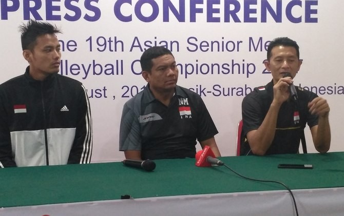 Pelatih TImnas Bola Voli Putra Indonesia Samsul Jais (kanan) merasa harus ada perbaikan dari permainan anak asuhnya.
