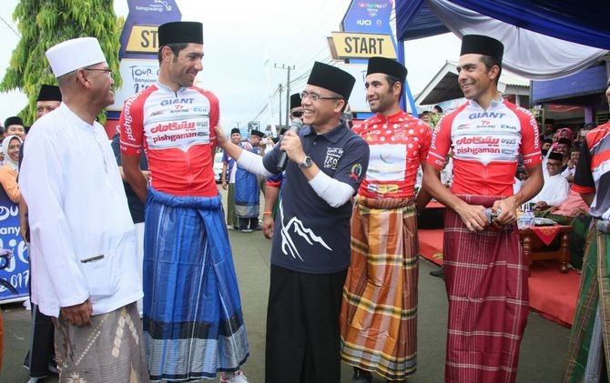 Sebelum balapan dimulai, para pembalap serta panitia lomba dari Persatuan Balap Sepeda Internasional (UCI) diajak ikut mengenakan sarung dan kopiah.