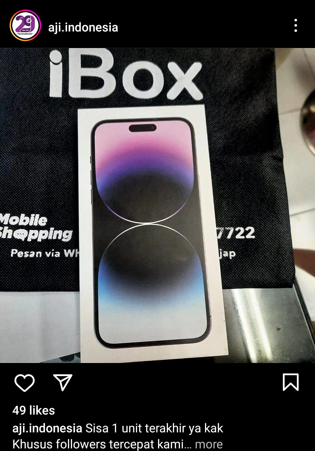 Akun Instagram AJI diduga diretas. Tangkapan layar unggahan akun aji.indonesia yang jualan handphone.