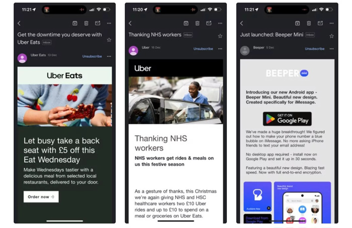 Fitur ini adalah cara yang mudah untuk berhenti berlangganan email dibandingkan dengan pendekatan seluler saat ini. Pengguna sebelumnya harus mengetuk menu tiga titik di bagian atas jendela pesan dan kemudian memilih “berhenti berlangganan,” atau mereka harus menggulir ke bagian bawah email dan mencari tombol “berhenti berlangganan” milik pengirim.