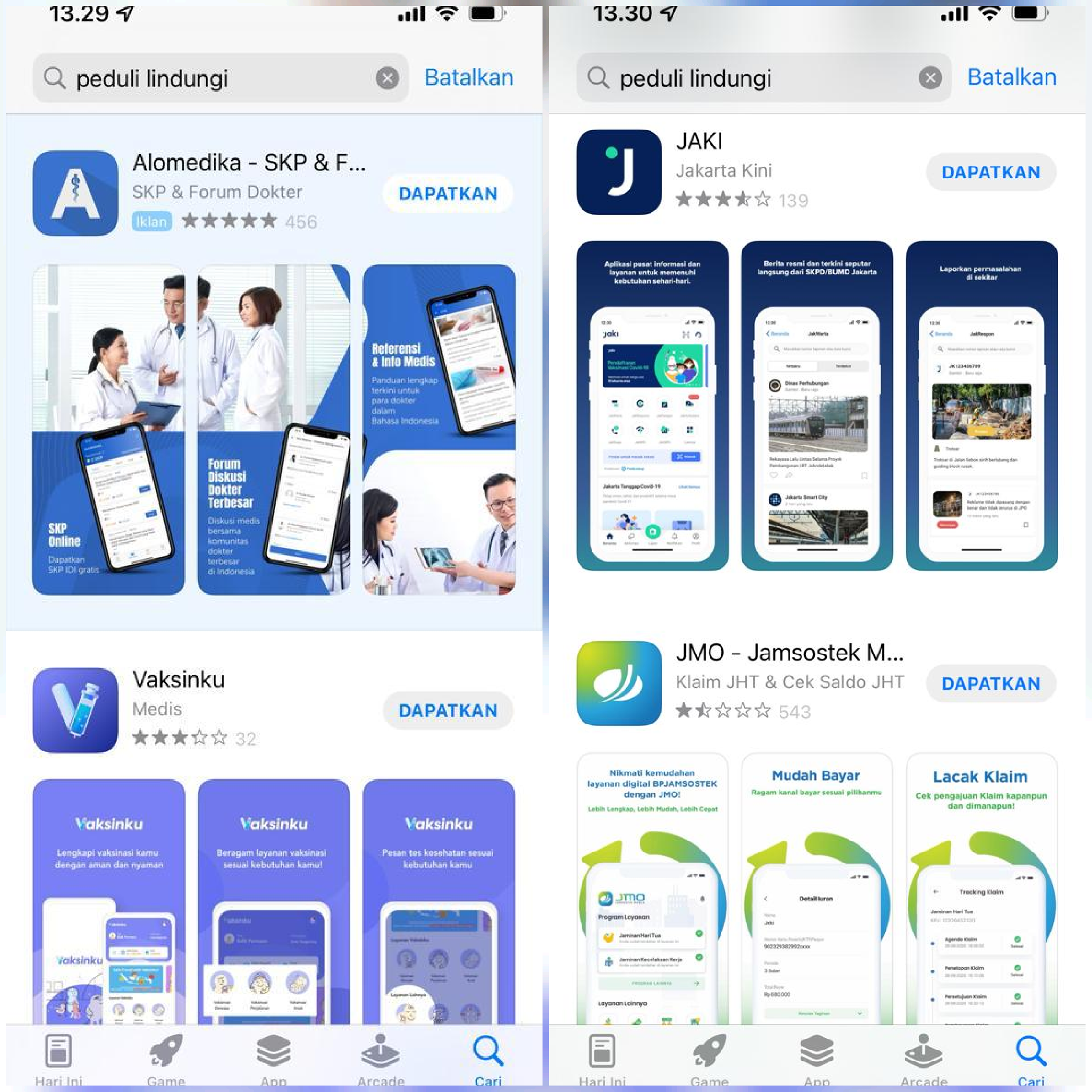 Berdasarkan pantauan JawaPos.com pada Senin (21/2) siang, aplikasi PeduliLindungi ini memang tidak muncul saat dicari di App Store. Dengan mengetik 'PeduliLindungi', aplikasi tersebut tidak muncul.