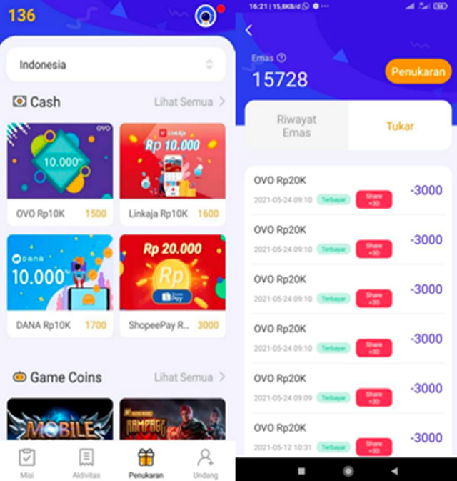 Kamu juga bisa menonton iklan (3 poin setiap iklan). Tentunya sangat menguntungkan sekali karena hanya dengan menonton video Anda akan mendapatkan poin. Ini sangat menarik dan akan membuat waktumu menghasilkan.