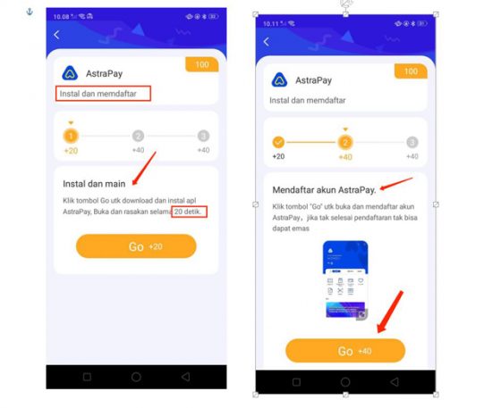 Misi ini perlu diinstal dan dibuka, maka akan mendapatkan 20 poin! Setelah menyelesaikan langkah pertama, langkah kedua mengharuskan kamu untuk mendaftar, dan akan mendapatkan 40 poin.