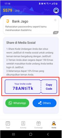 Kamu dapat menginput Kode Undangan : 78ANtiTk.