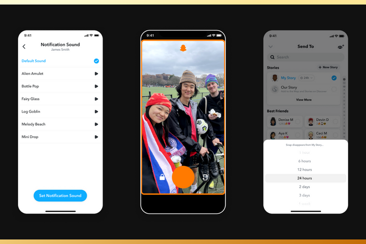 - Suara notifikasi khusus memungkinkan Anda mengatur nada yang berbeda untuk setiap teman. Jadi Anda bisa tahu siapa yang mengirimi Anda Snap tanpa melihat ponsel Anda.