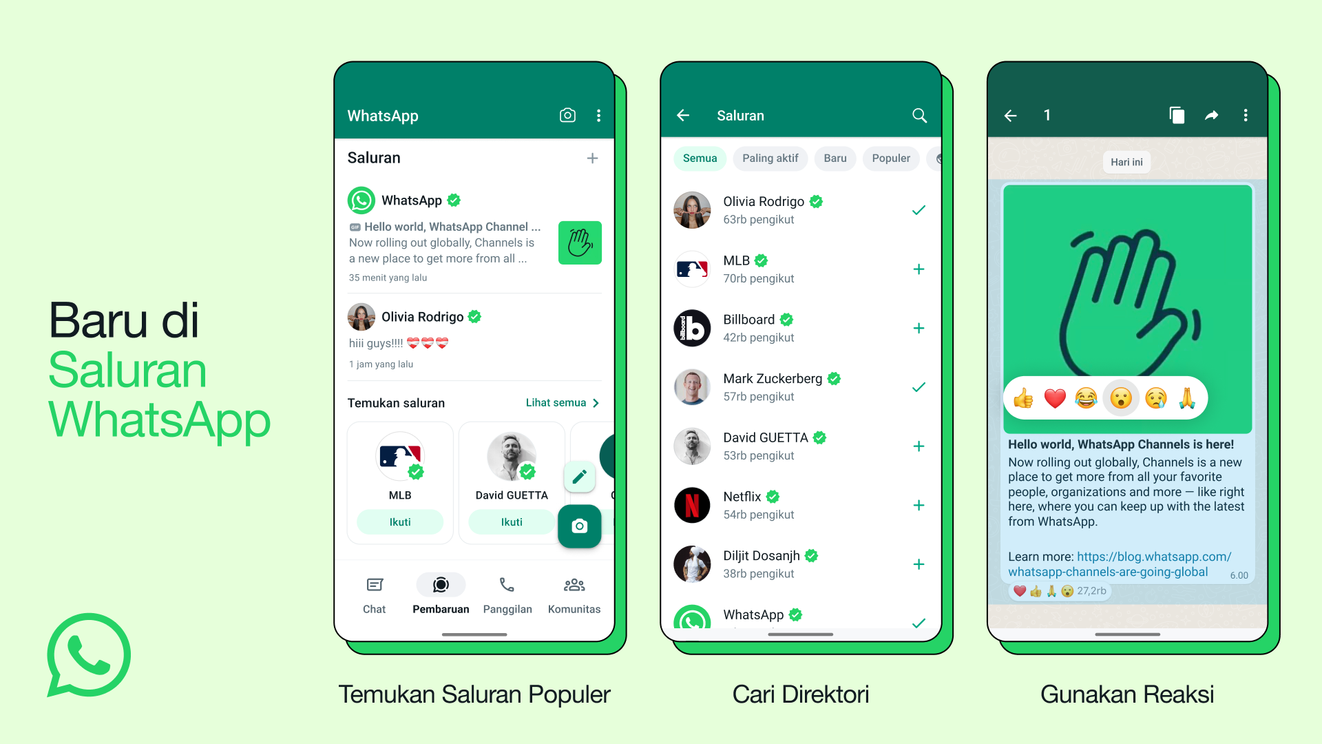 Fitur Saluran WhatsApp resmi tersedia untuk pengguna. (Istimewa).