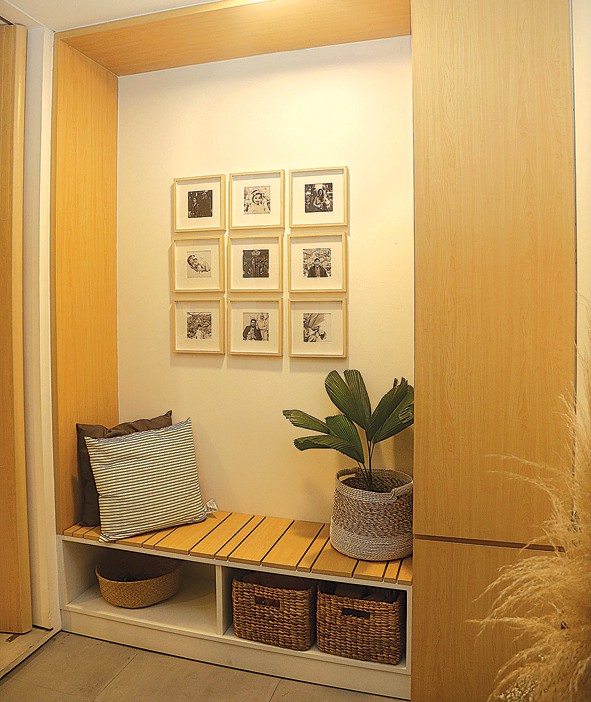 Sudut cantik ini menjadi salah satu concern Nita. Jadi tempat singgah untuk lepas pasang sepatu. Juga penyimpanan stok kebutuhan rumah.