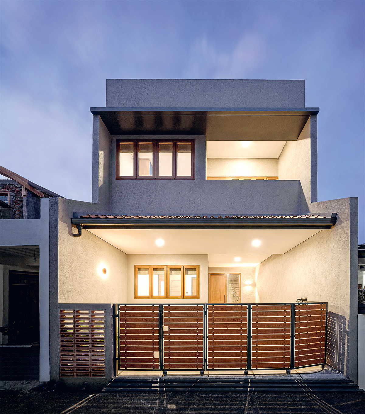 Jarak rumah dengan tetangga sangat rapat. Marchela pun mendesain rumah itu dengan fasad cukup masif. Ada balkon yang mengakomodasi kamar utama, tapi dibuat cukup tinggi demi privasi tetap terjaga. Kendati demikian, balkon masih bisa dijadikan tempat memelihara burung yang menjadi hobi ayah klien.