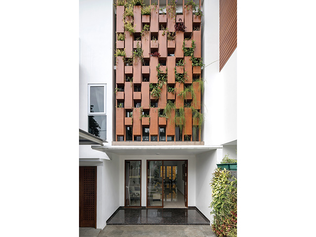 Misalnya, tanaman sirih marble dan Monstera adansonii atau yang dikenal dengan nama janda bolong. Fasad berupa vertical garden tersebut juga bersifat fleksibel. Artinya, tanamannya mudah diganti-ganti. ’’Itu di dalamnya ada pot-pot. Jadi, kalau pemilik mau mengganti tanamannya tidak repot,’’ kata arsitek yang tergabung dalam firma arsitektur Studio Sae tersebut.