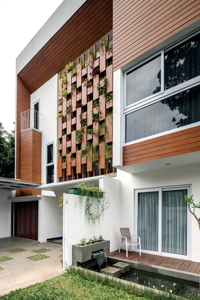 IKON: Taman vertikal yang tampil ada fasad Rumah Pejaten tidak hanya tempat bernaung tanaman-tanaman dalam pot, tetapi juga melapisi bagian dalam rumah agar tidak terekspos dari luar. (Studio Sae untuk Jawa Pos)