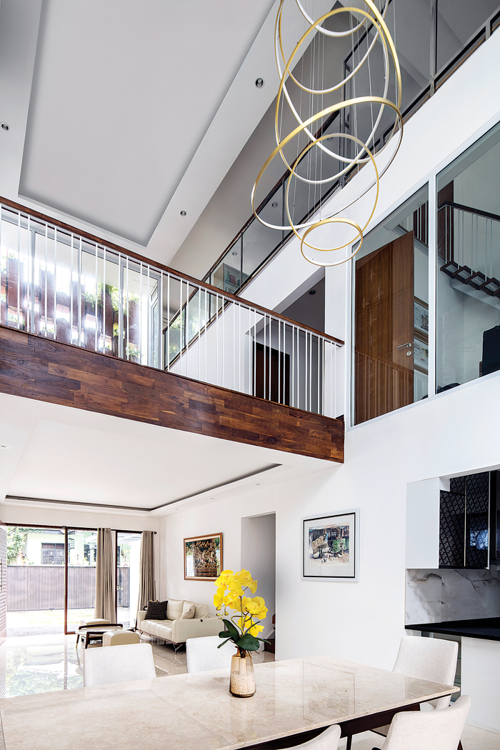Adanya tanaman-tanaman kian menghidupkan suasana di dalam rumah. Di belakang vertical garden itu terdapat pintu lipat kaca yang berbatasan dengan hall di lantai 2. Pintu bisa dibuka selebar-lebarnya untuk sirkulasi udara maksimal dan mendapat sedikit elemen hijau dari tanaman. Meski ditutup pun, view vertical garden masih bisa terlihat.
