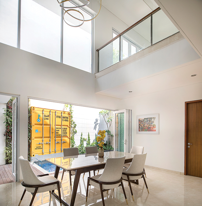Salah satu yang unik dari area kolam renang adalah adanya pintu kontainer. Menurut Supar, pintu kontainer itu menunjukkan ikatan emosional pemilik dengan rumah. Selain itu, menjadi pengingat perjuangan pemilik yang pernah bekerja di perusahaan kontainer.