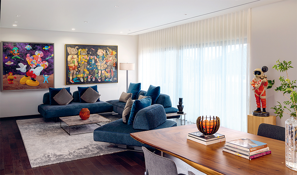 Ruangan di sekelilingnya otomatis menjadi terang lantaran courtyard hanya dibatasi dengan sliding door kaca transparan. Di sisi lain, area ruang makan terasa lebih luas berkat adanya courtyard tersebut. Terlebih, ruang makan dibuat double-height ceiling yang membuatnya terasa semakin lega. ”Selain itu, menciptakan komunikasi virtual. Ketika ada anaknya di atas, pemilik rumah bisa melihat aktivitasnya,” katanya.