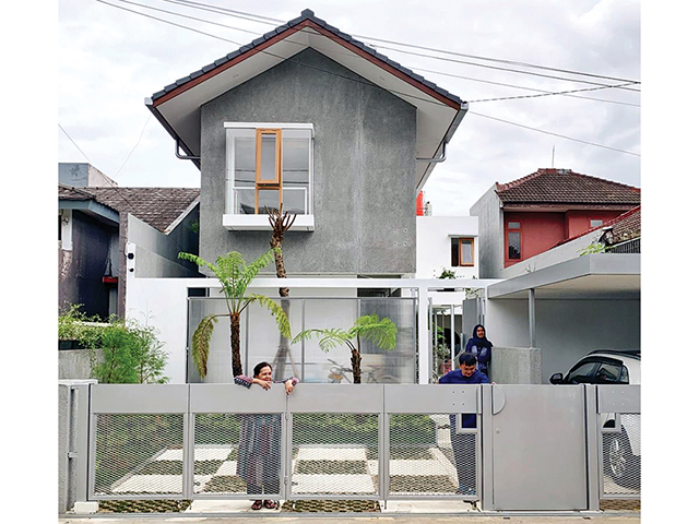 Keunikan rumah tersebut bisa dilihat dengan cukup jelas oleh siapa pun yang melintasinya. Sebab, Lukie memang sengaja membuat bagian depannya cenderung terbuka. Pagar pendek dengan material perforated metal ditempatkan sebagai penanda teritorial sekaligus pengamanan.