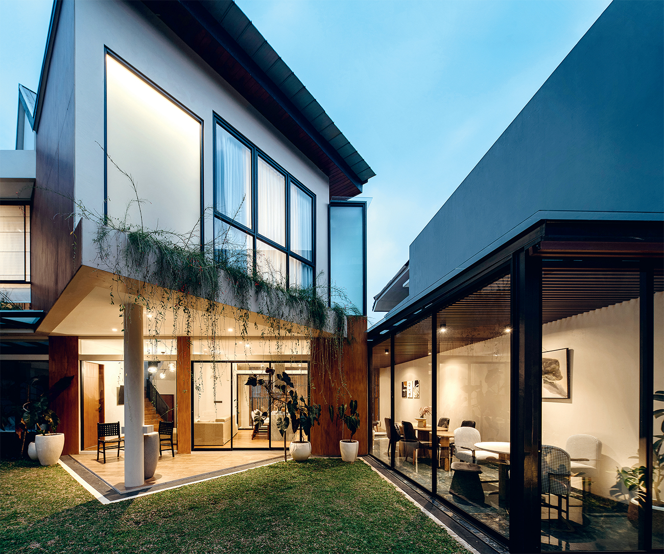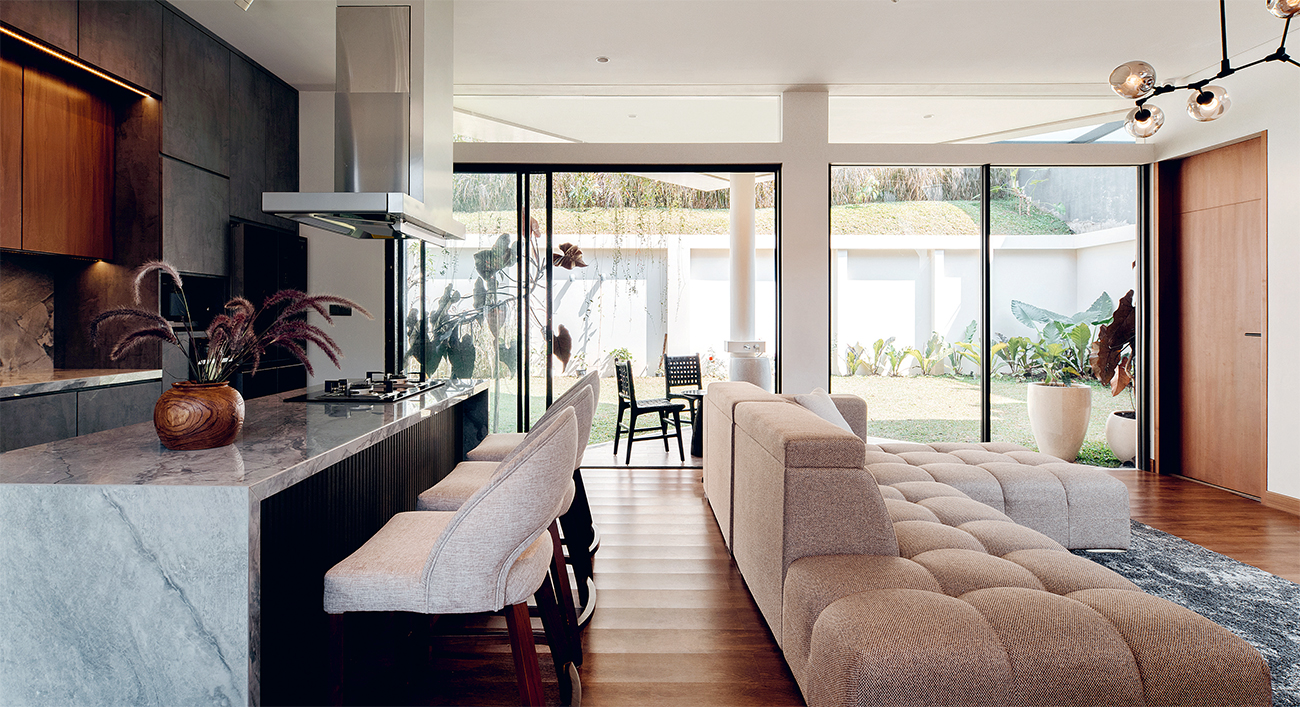 ”Kami ingin memaksimalkan potensi lahan dan menghadirkan keindahan kontemporer yang selaras dengan alam lewat konsep geometris tropis ini,” ujar arsitek Studio Avana Ramos Saedi.
