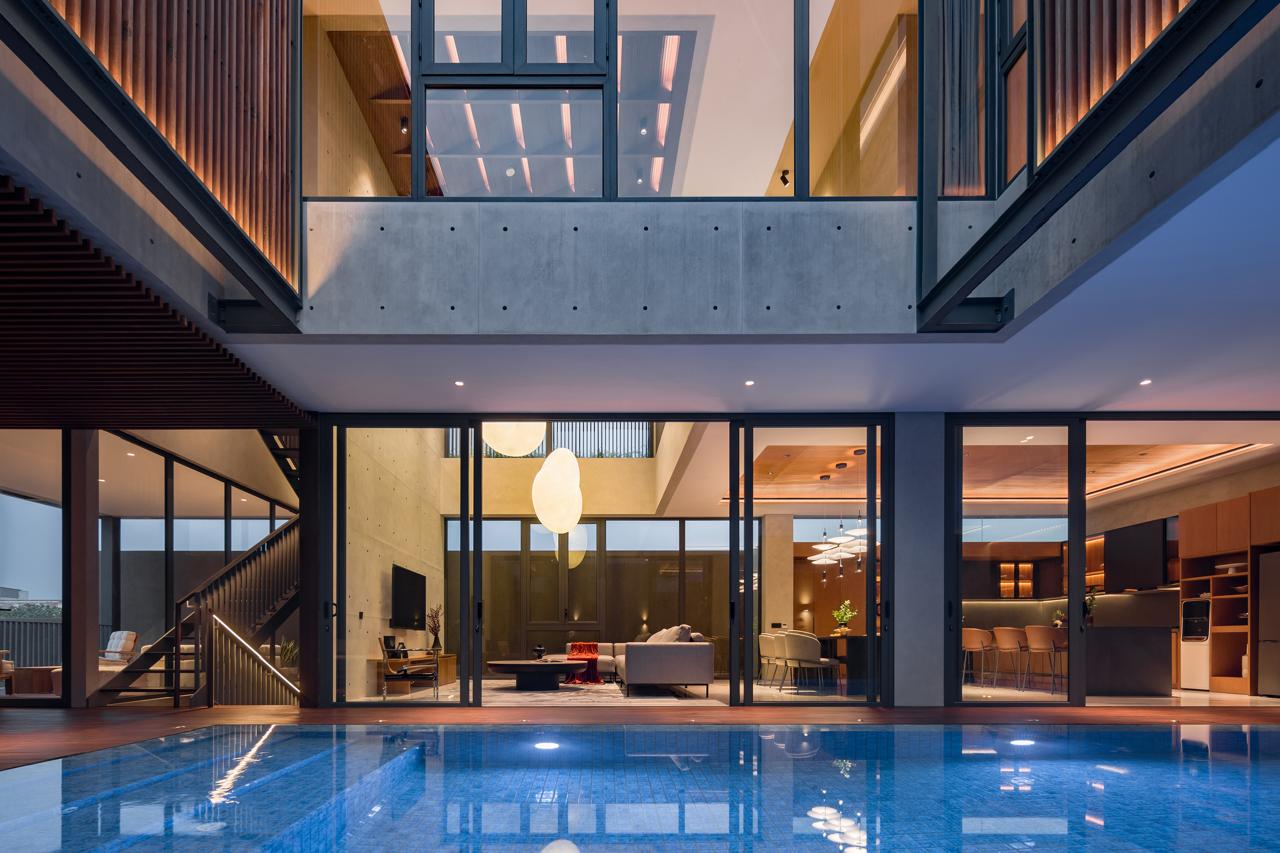PUSAT ORIENTASI: Mayoritas ruangan di AM House mendapatkan view kolam renang sehingga menyegarkan mata. (ANDREAS PERBOWO WIDITYAWAN VIA TAMARA WIBOWO ARCHITECTS)