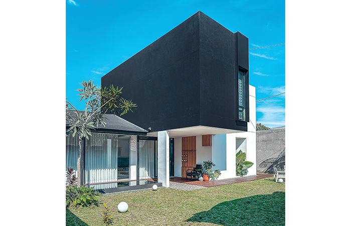 MONOKROM: Fasad kotak warna hitam solid tampak ”melayang” ketika dipadukan dengan bagian bawahnya yang berwarna putih dan material transparan. (FOTO-FOTO: ADITYA WIRATAMA (BIRKA LOCI) UNTUK JAWA POS)