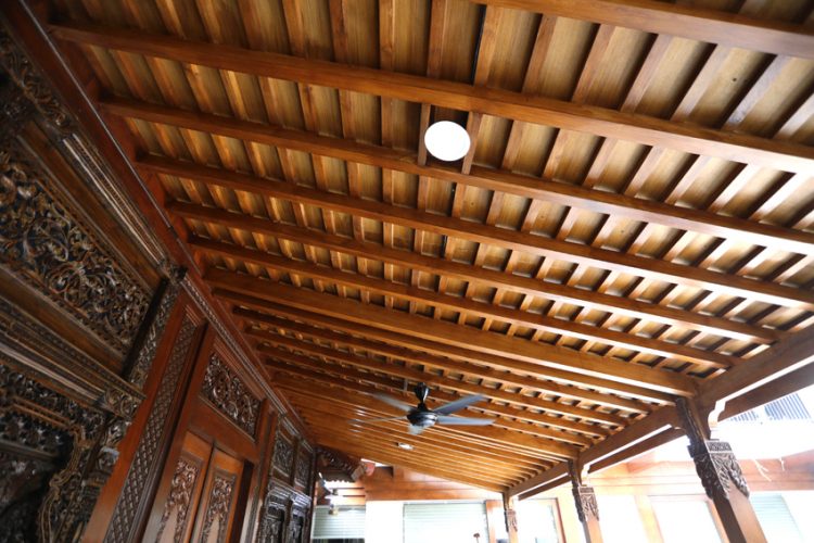JAWA BANGET: Bahan utama pendapa biasanya kayu jati. Jika motif serat kayunya cantik, finishing-nya dengan warna terang. (ANGGER BONDAN/JAWA POS)