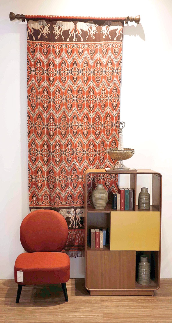 Kain tradisional tak hanya dihamparkan untuk menghias rumah. Hidajat menggunakan kain tenun khas Sumba Timur dan kain tradisional asal Rajasthan, India, untuk sarung bantal.