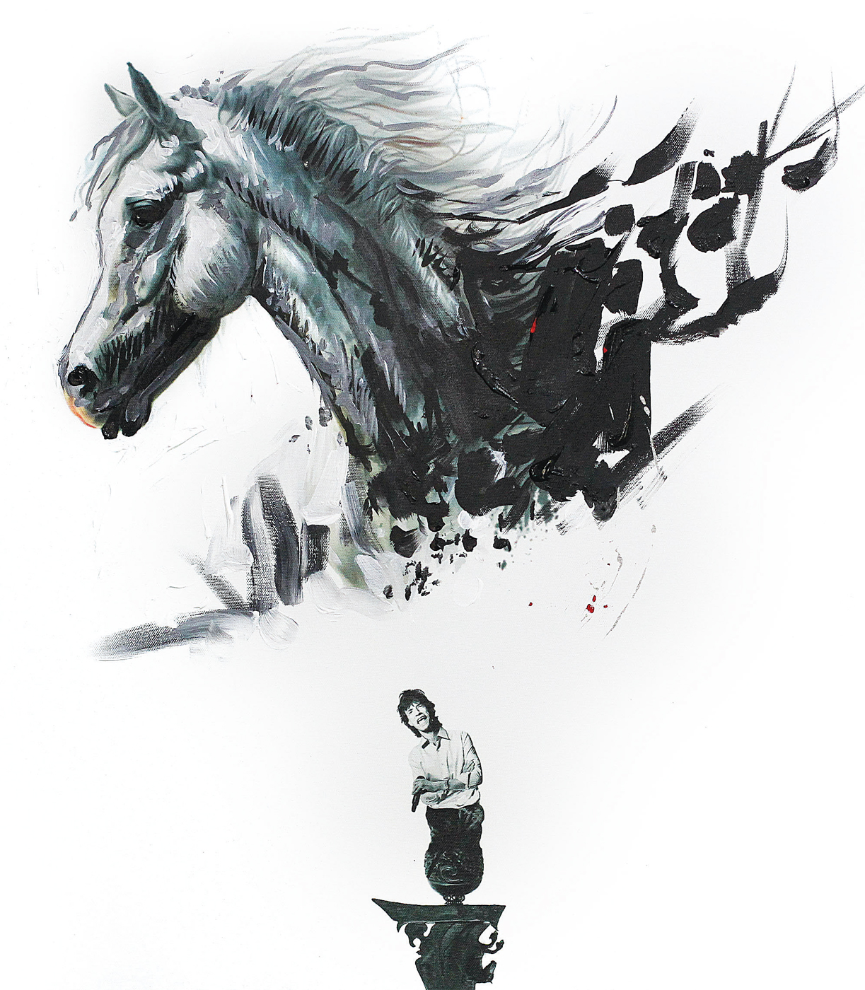 Misalnya, dalam karya Wild Horses Kyai Jagger. Perupa Toni Yunus menggambar seekor kuda hitam dan sebilah keris di bawahnya. Namun, bagian hulu keris tersebut bukanlah ukiran sebagaimana umumnya dijumpai. Melainkan sosok vokalis band legendaris The Rolling Stones Mick Jagger. Sebagai catatan, Wild Horses adalah salah satu hit band 61 tahun tersebut pada album Sticky Fingers (1971).